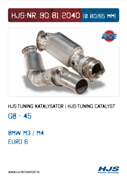 Der von den HJS Tuning Experten entwickelte Katalysator hat alle Entwicklungsschritte durchlaufen. Gefertigt aus Edelstahl und mit der aus dem Motorsport stammenden Kalotten Thermoisolierung ummantelt, steht ab sofort ein HighTech Tuning Produkt für BMW Fahrer zur Verfügung. Der deutlich verringerte Abgasgegendruck des HJS Tuning Katalysators sorgt nicht nur für reduzierte Temperaturen im Turbolader, sondern auch für ein deutlich besseres Ansprechverhalten des Motors. Natürlich ist eine Leistungs- und Drehmomentverbesserung deutlich zu spüren. Und nicht zuletzt sorgt der verwendete Metallträger noch für einen sonoreren Klang. Mit der ECE – Zulassung ist eine Eintragung in die Fahrzeugpapiere nicht erforderlich.